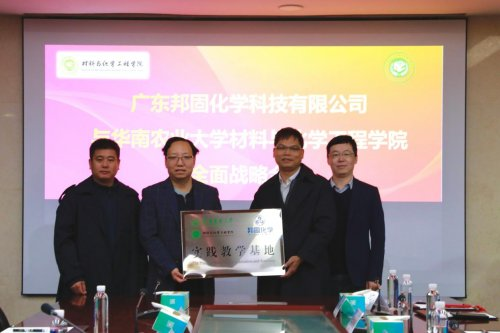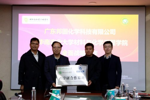 作为松山湖材料实验室入驻企业,广东邦固化学专注于先进涂层材料、高分子功能材料的研发与应用,与华农化材学院的科研方向高度契合。座谈中,双方聚焦关键材料技术突破路径、联合研究平台建设方案深入研讨,正式签订校企合作协议,挂牌共建“实践教学基地”与“产学研合作基地”,为新材料领域协同创新搭建起实体化合作载体。值得一提的是,双方合作落地的韶关市科技专项《高性能环保型柔印冷烫高分子功能材料配方设计及工艺开发项目》,已成为学院服务地方经济、助力广东省“百千万工程”的典型实践案例。